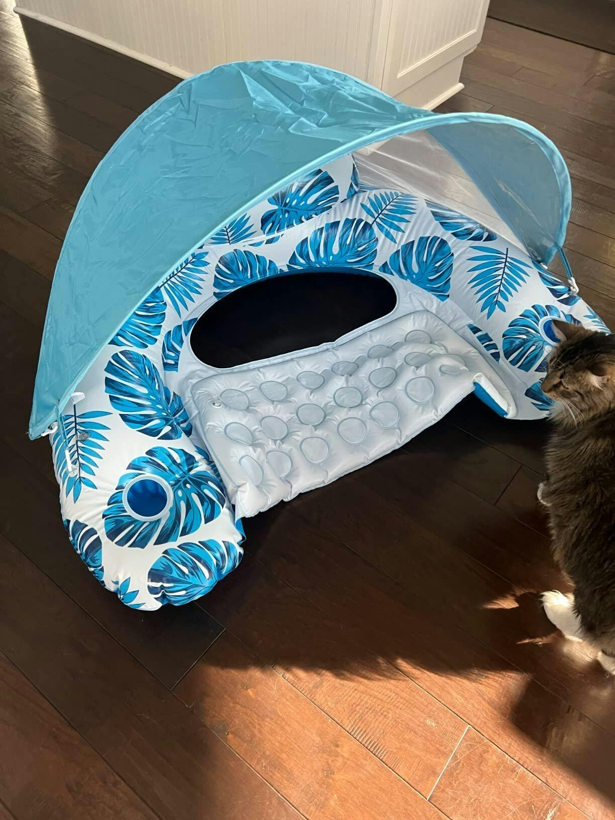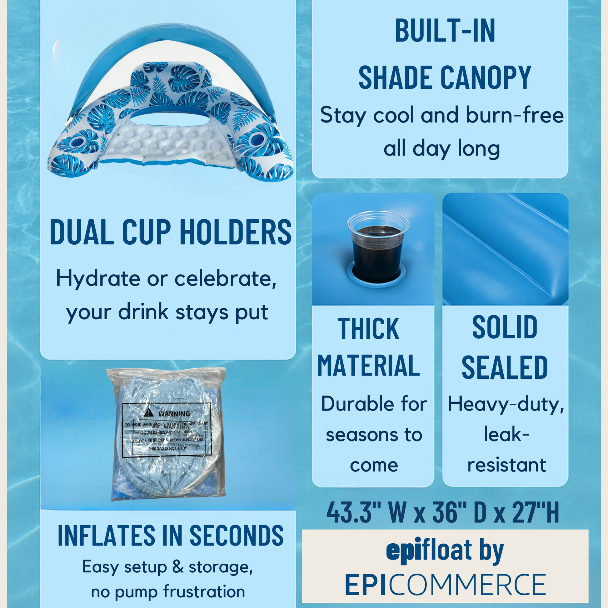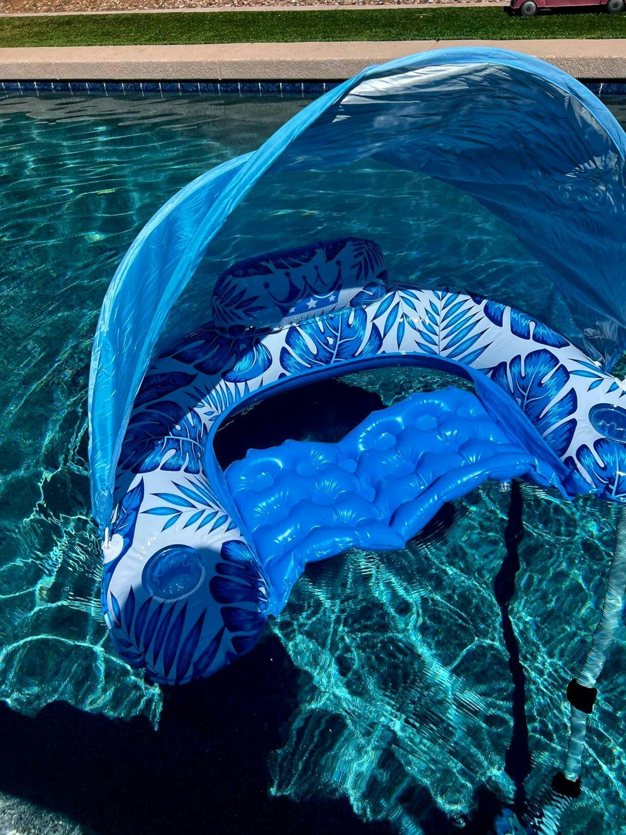 -Meet your new poolside essential: the inflatable lounger that brings shade, comfort, and pure chill to every sunny day.
